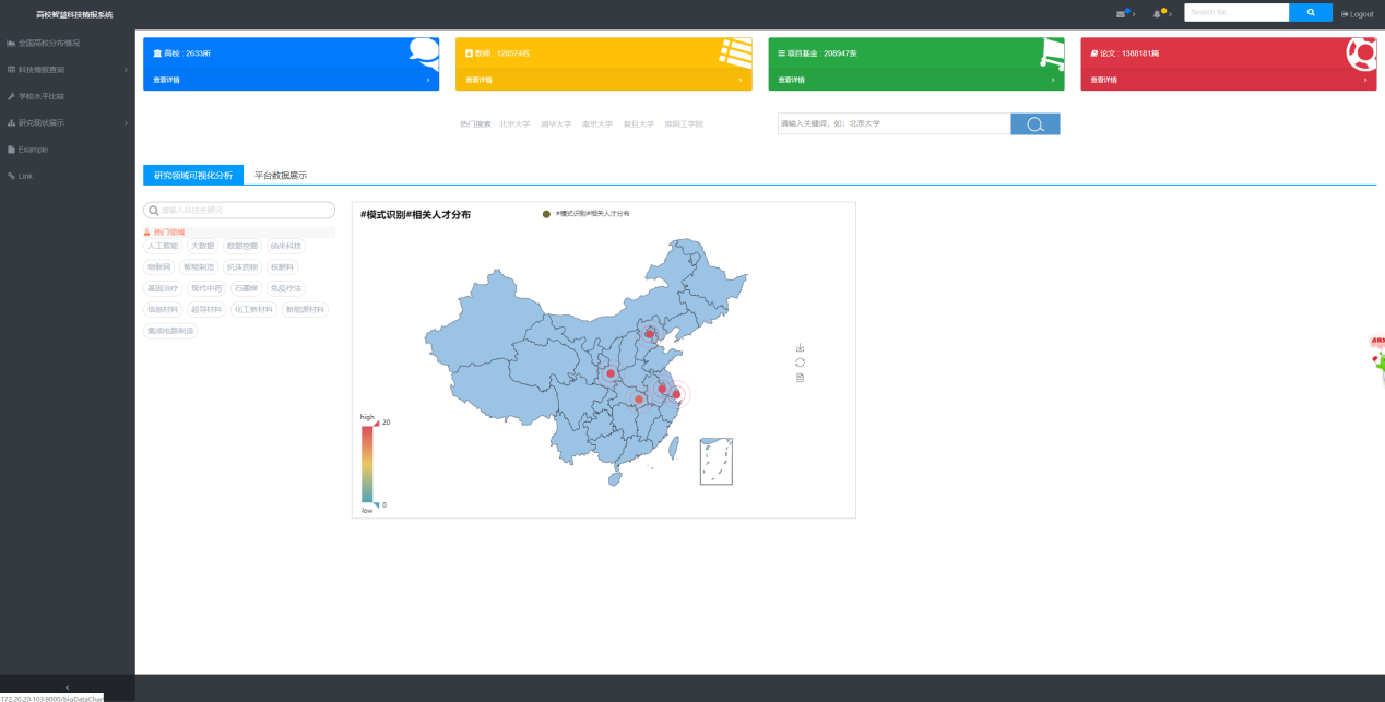 创新性:(1)研发多源异构网页数据自动化获取及相应信息抽取工具软件;(2)融合大量多源异构科技信息数据,多角度分析建立科技人员或机构的立体“画像”,分析其网络关系,提供科技领域的热点研究方向、演化、趋势及热点人才等高端科技情报信息服务。项目合作企业为江苏卓易信息科技股份有限公司。
