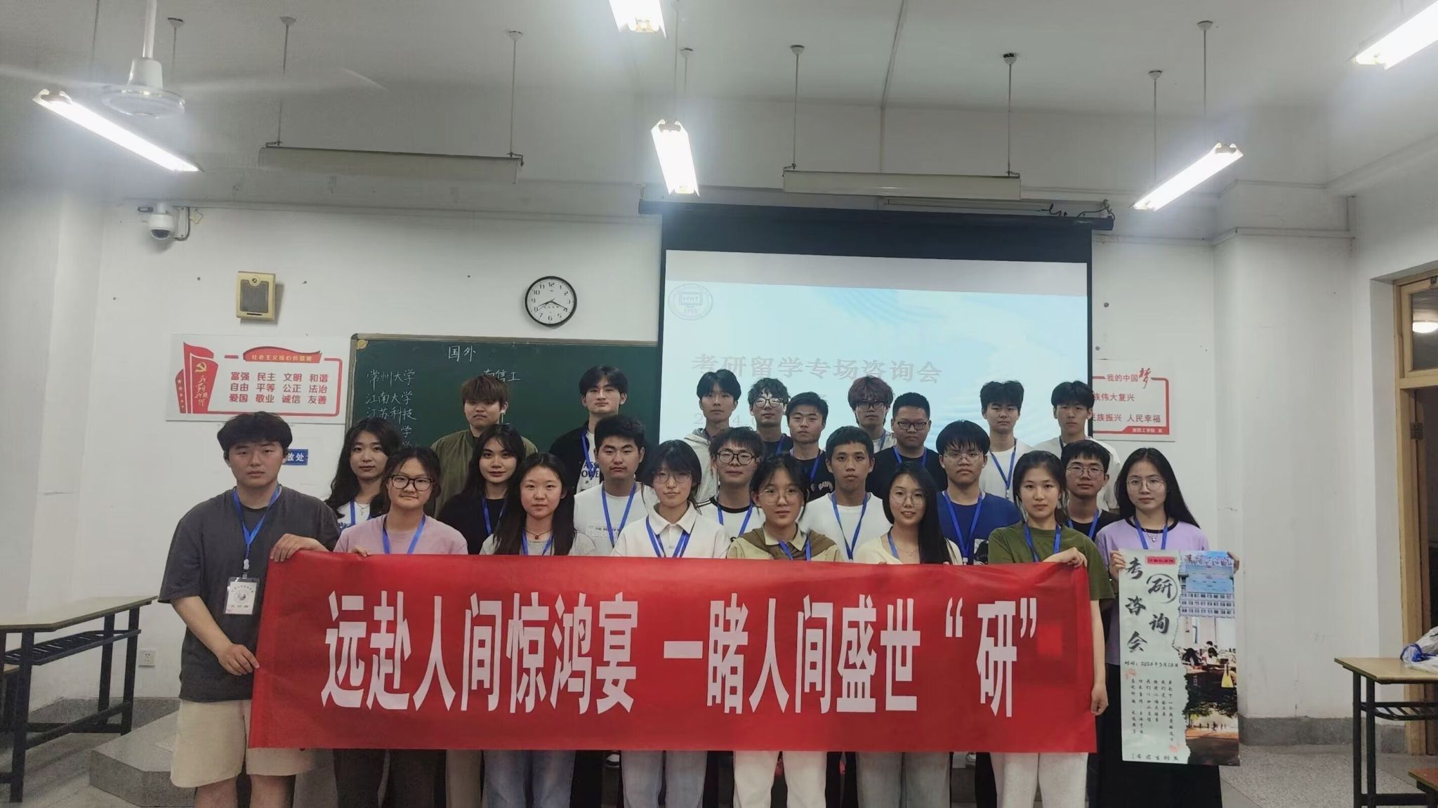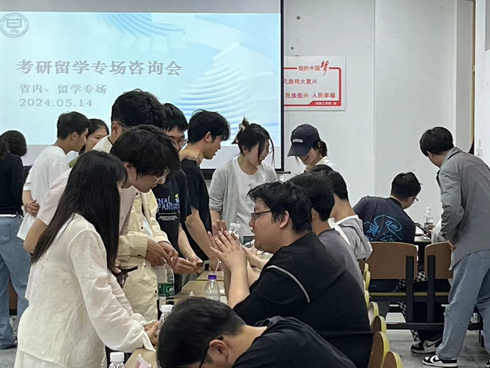 5月14日,yd222云顶线路检测在枚乘路校区宁静楼207教室和210教室开展“追光”考研留学咨询会。本次咨询会由yd222云顶线路检测学工办主办,怡学团协办, 90名大四考研留学拟录取的员工和450余名大一大二大三员工参加。