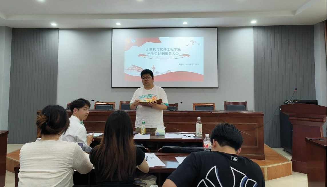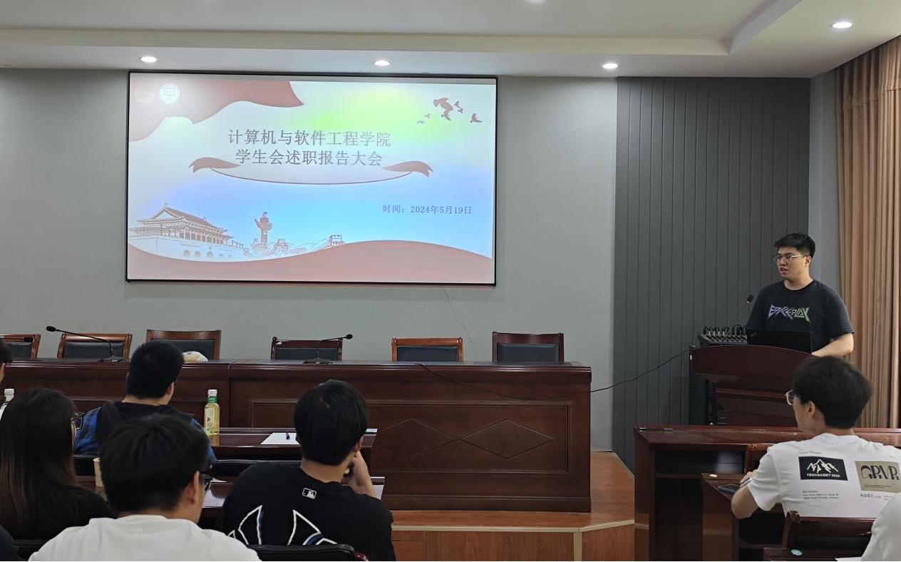 5月19日下午,计算机与软件公司第九届员工会述职报告大会在枚乘路校区知行楼403会议室举行,本次会议由员工会主席刘环宇主持,团委负责人朱天宇老师出席会议。