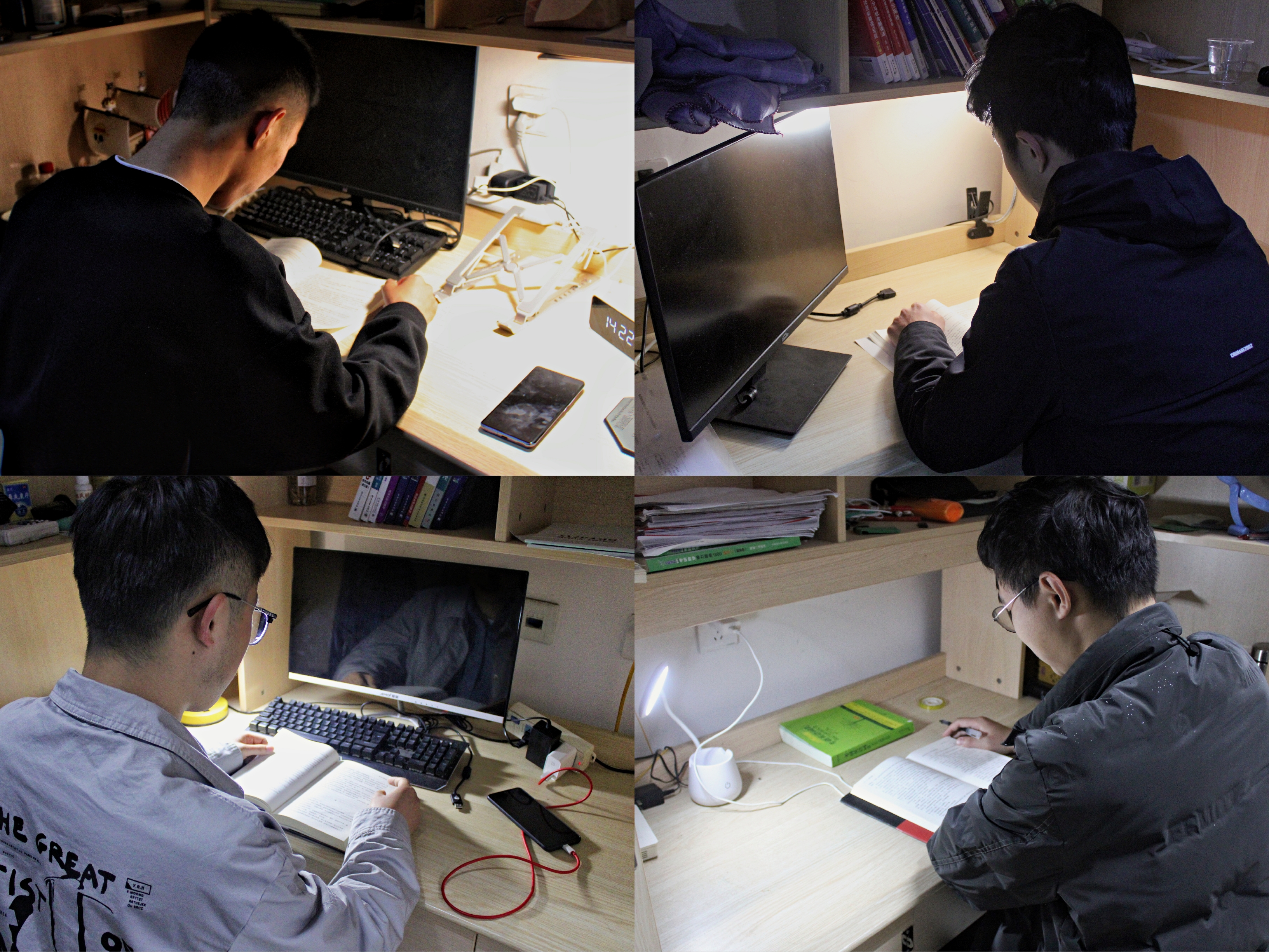 在整个枯燥乏味的备考生活中,他们共同制定了宿舍考研作息时间表,从9月开学至研究生初试期间,每天早上6点起床,晚上12点睡觉,互相监督,互相鼓励,探讨学术。大学四年,这四个大男孩逐渐褪去年少的稚气,内外兼修,各自精彩,彼此激励,积极健康的寝室氛围和勤奋向上的学习风气鞭策着他们努力前行。最终,程鑫和吴昊被南京信息工程大学录取,赵前坤和王宇分别被南京理工大学和杭州师范大学录取。