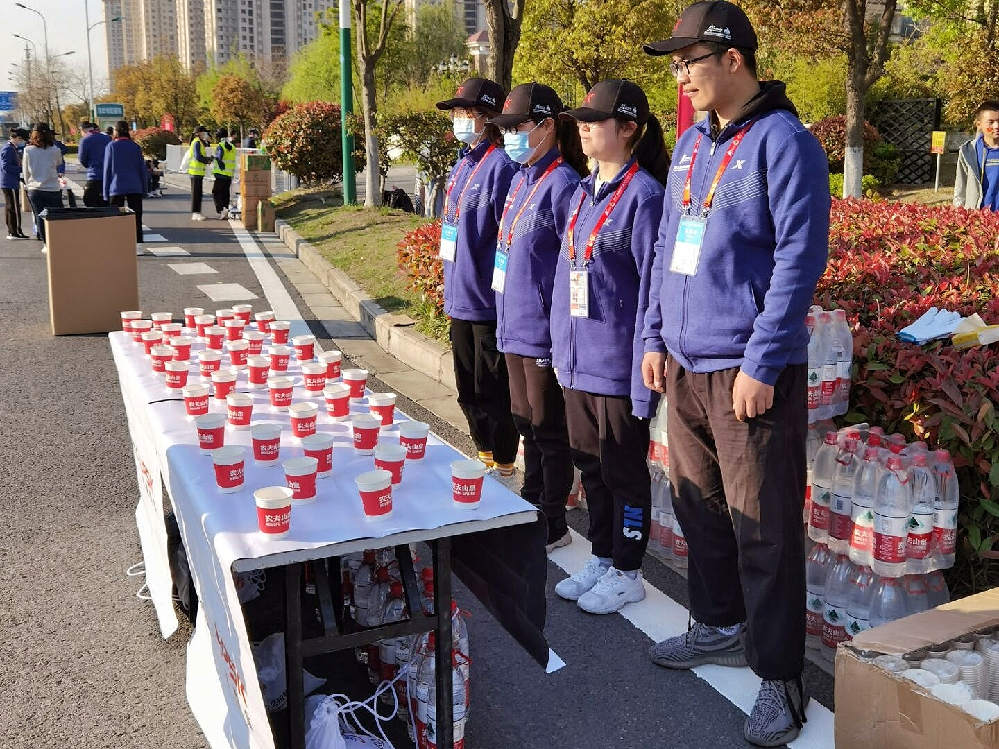 此次比赛开始时间为早上7:30,为保证提前到岗进行志愿服务,公司志愿者们四点就已经起床准备就绪,在校门口集合等待出发。到达场地后,志愿者们便进入了工作状态,与工作人员一起为赛事进行准备工作,做好对选手的接引工作。此次比赛项目分为42.195公里的全程马拉松和7.5公里的迷你马拉松,为保证比赛的正常进行,志愿者们还肩负起疏导好群众和媒体的责任。比赛结束后,志愿者们同工作人员一起进行场地清理工作。