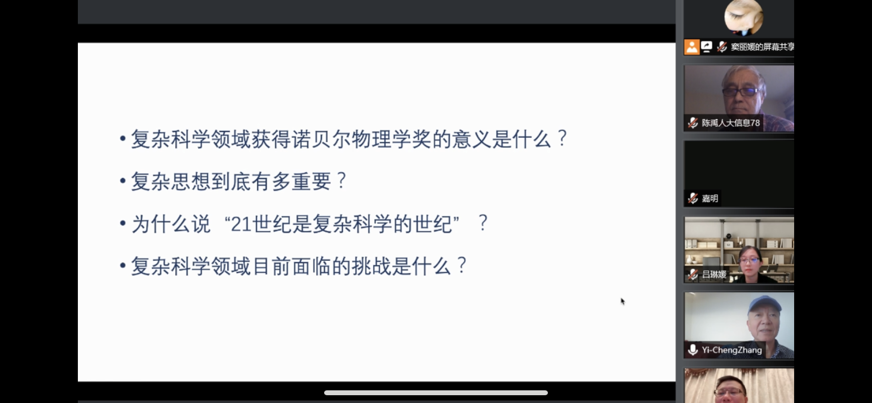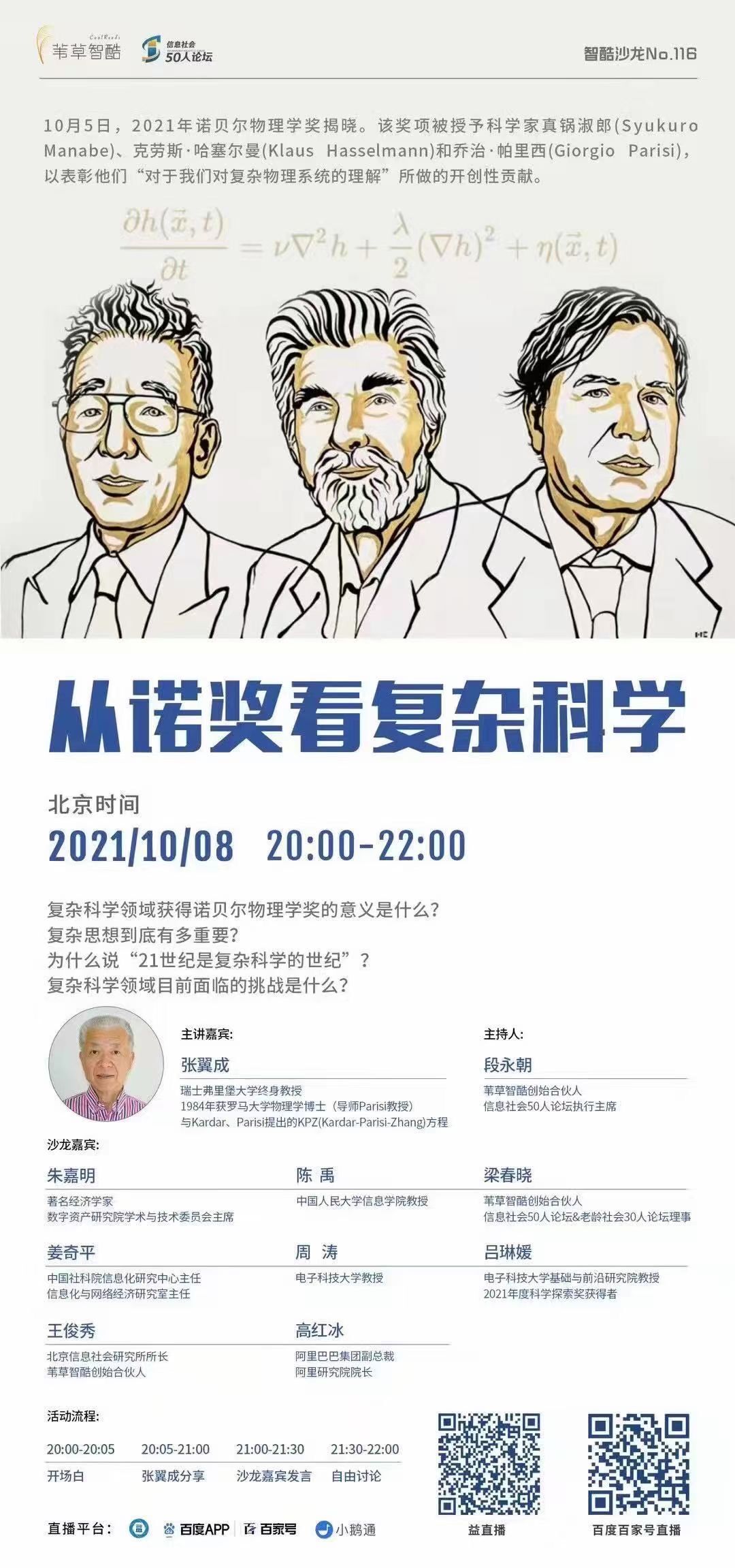 2021年10月8日晚20:00-22:00,yd222云顶线路检测yd222云顶线路检测组织公司全体研究生观看直播——“从诺奖看复杂科学”。