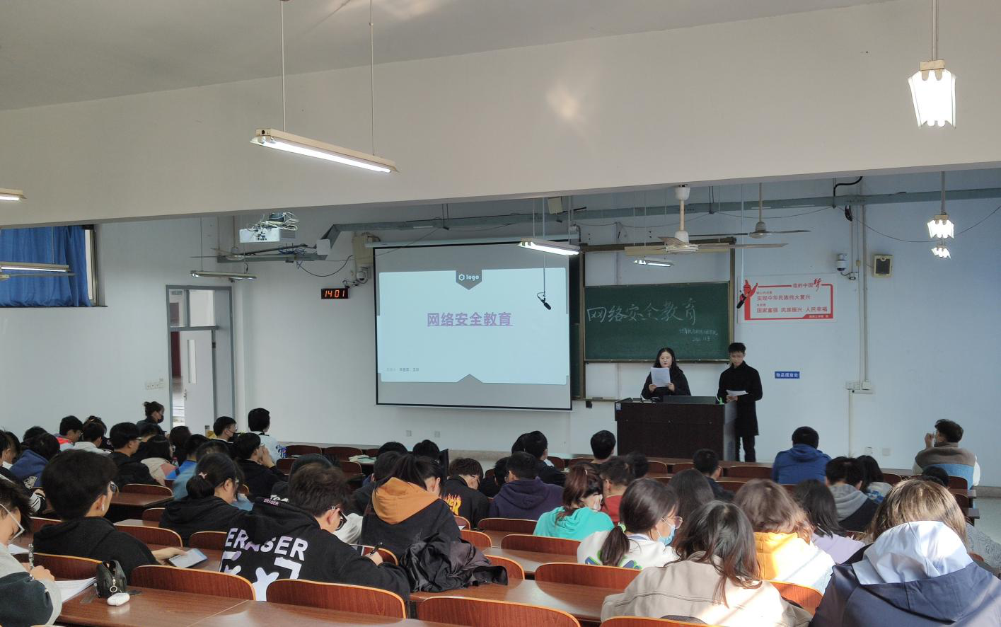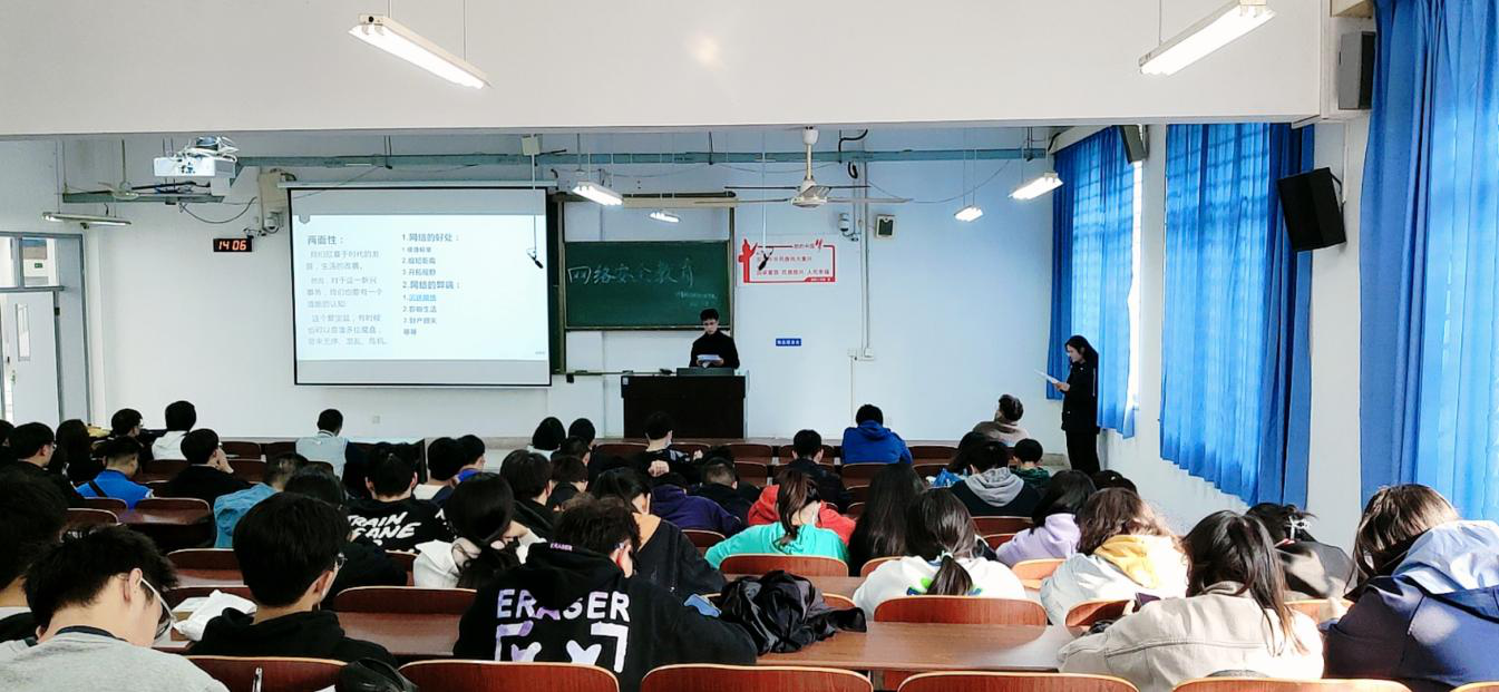 活动开始之前,同学们在前排完成签到并入座。活动开始后,主持人通过短视频和身边案例从网络的两面性、抵制不良网站、诈骗、网络交友四个方面向同学们展示了网络安全的重要性。之后,又从文明用语和阳光青年两方面对同学们提出了建设积极的校风及生活方式的希望。最后,由组织部干事进行点名签退,完成pu审核。