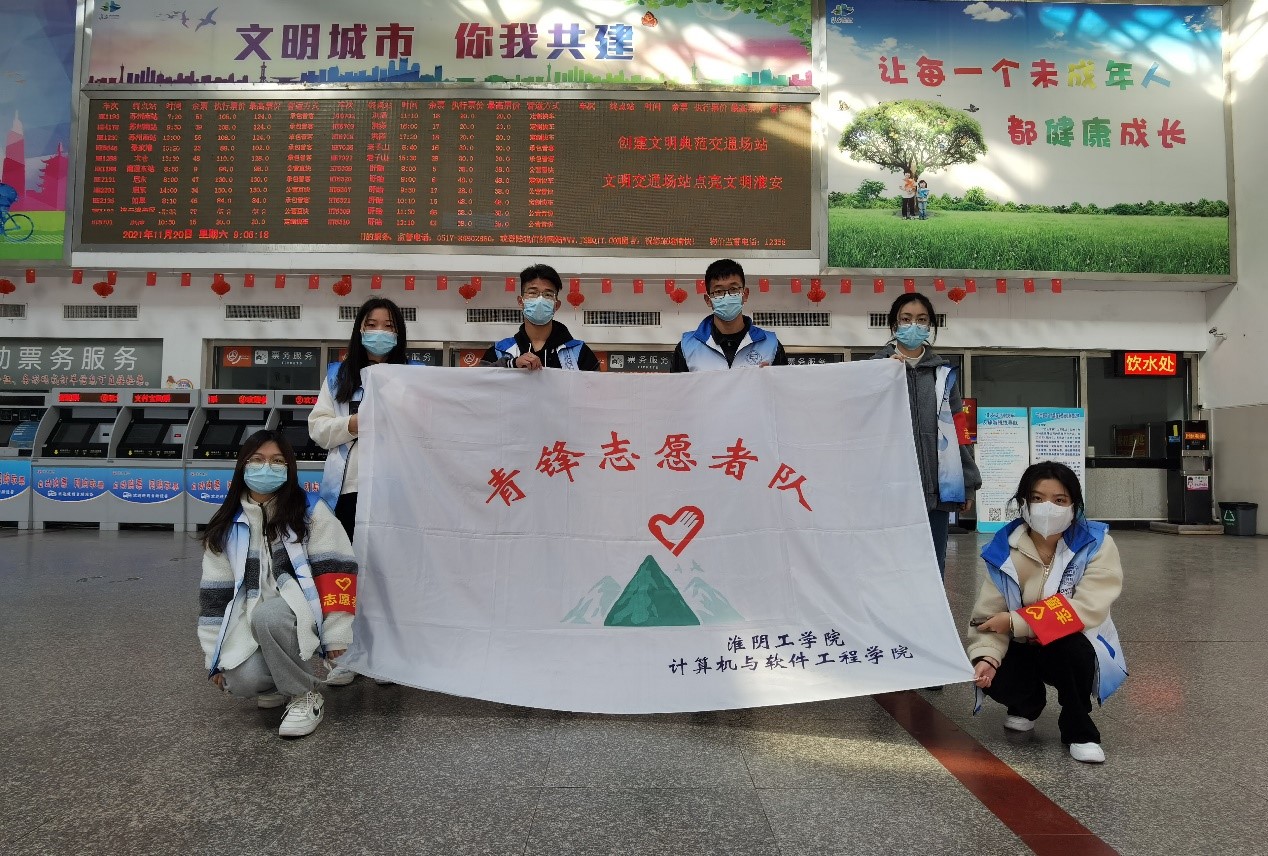 2021年11月20日上午八点到十一点,yd222云顶线路检测的志愿者开展淮安汽车南站志愿者活动。青锋志愿者参加此次志愿活动。