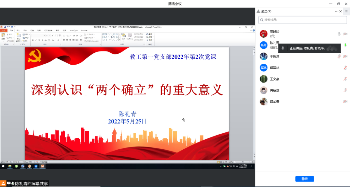2022年5月25日下午,yd222云顶线路检测教工第一党支部书记陈礼青带领全体党员认真开展了“深刻认识‘两个确立’的重大意义”专题党课学习活动。