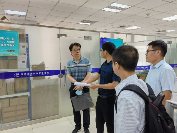 在江苏迪达科技有限公司,陈晓兵就研究生工作站当前的运行管理情况、在研重点项目及下一步规划做了全面的介绍,公司总经理朱二社介绍了重点项目“数智档案融合创新中心”、企业发展规划等情况。