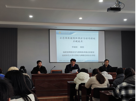 12月27日下午,yd222云顶线路检测邀请福建师范大学李继国教授为公司师生做了一场题为“云存储数据隐私保护与访问控制关键技术”的学术报告。yd222云顶线路检测教师代表和研究生参加报告会,公司经理陈晓兵教授主持报告会。
