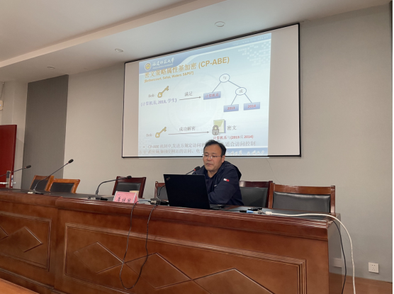 数据安全和隐私保护是云计算领域亟待解决的重要问题,也是制约云计算发展和推广的主要因素。属性基加密是实现云端对数据进行细粒度访问控制的关键技术。李继国教授结合云计算环境中数据安全和隐私保护的特殊需求,探讨了高效属性基加密方案的构造方法、属性基加密中隐私保护、关键字搜索、用户撤销、密钥滥用、叛徒追踪和可验证性等关键技术问题,并进一步讨论了属性基加密方案在个人健康记录中的应用。在提问交流环节,李继国教授详细回答了老师和研究生提出的有关问题。
