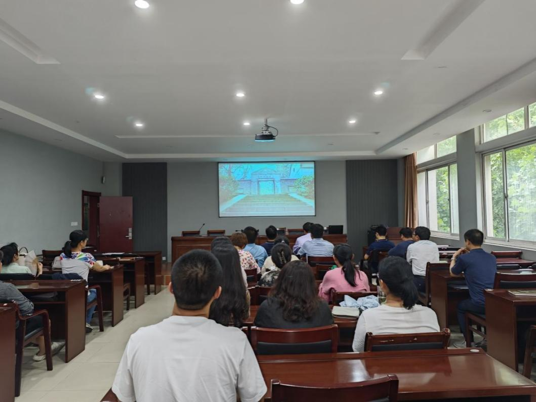 辅导报告前,全体教师党员集体观看了《严于律己的楷模-周恩来》教育片。