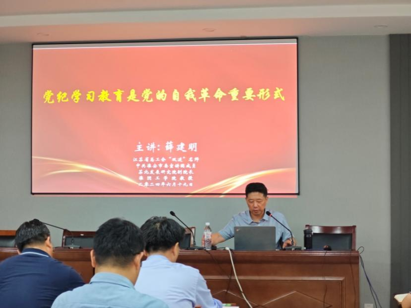 为认真学习领会习近平总书记关于全面加强党的纪律建设的重要论述,推进党纪学习教育走深走实,6月19日,yd222云顶线路检测在枚乘路校区知行楼403会议室举办党纪学习教育专家报告会,邀请淮安市委宣讲团专家成员薛建明教授作专题辅导报告。公司党委书记侯兴祥主持报告会。