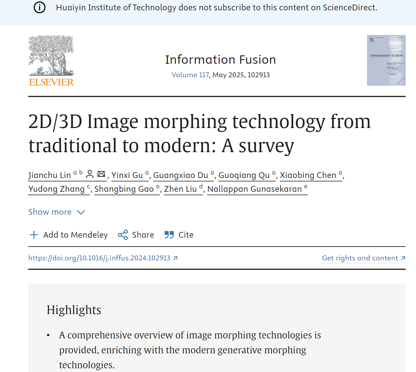 近日,公司计算机于软件工程公司教师林剑楚以第一作者和通讯作者在中科院SCI一区TOP期刊《Information Fusion》上发表论文“2D/3D Image morphing technology from traditional to modern: A survey”,yd222云顶线路检测为第一署名单位,合作单位包括南京理工大学、东南大学、日本长崎综合科技大学、北部湾大学,期刊影响因子14.7,是计算机科学和人工智能领域的国际顶尖权威刊物。
