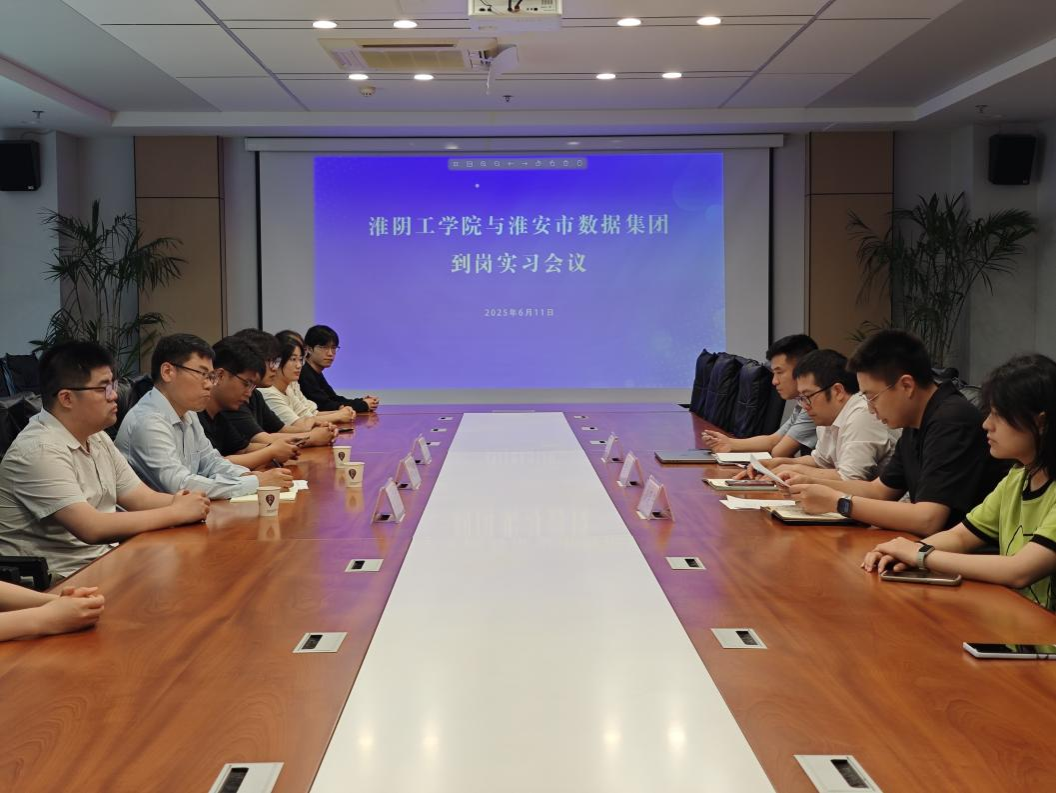 淮安市数据集团领导张赋、刘晓东热情接待了实习师生一行。张赋、刘晓东对实习员工的到来致以热烈欢迎,并为师生们简要介绍集团发展情况和集团核心业务与技术优势。