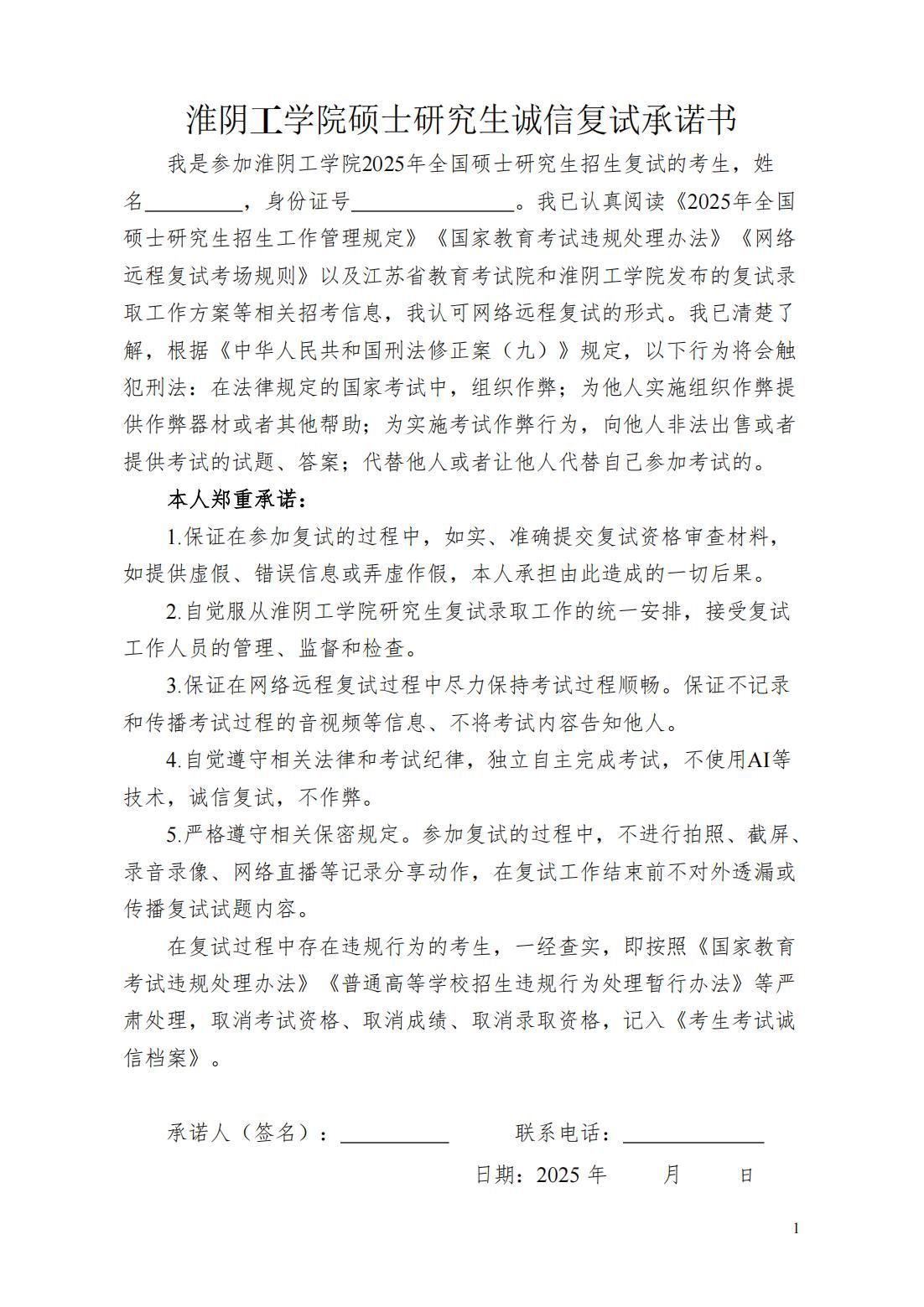 附件1.yd222云顶线路检测硕士研究生诚信复试承诺书